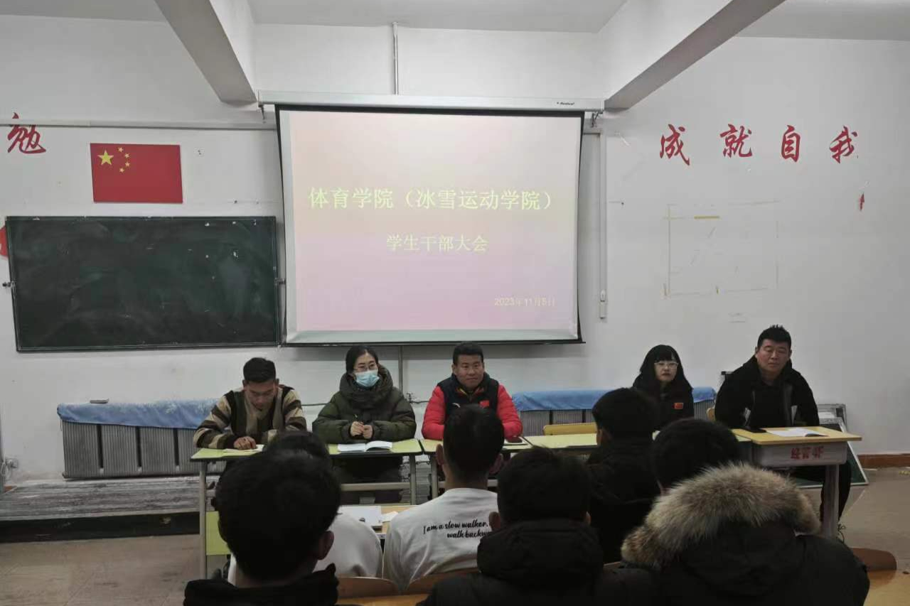 为深入开展学习贯彻习近平新时代中国特色社会主义思想主题教育,加强员工干部的综合素质,增进员工会各部门、班级干部之间交流合作,明确阶段性工作任务,11月5日,bevictor伟德官网在山下体育馆二楼会议室召开员工干部大会,党总支副书记凌占一、团学办全体成员、辅导员、员工会干部、各班班委参加会议。