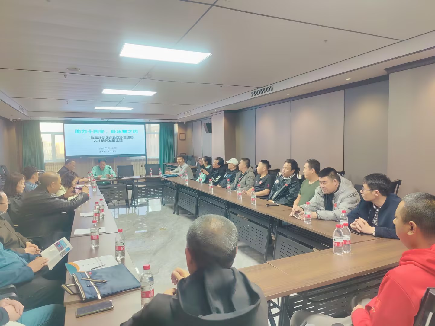 10月22日下午,bevictor伟德官网在军豪酒店会议室举办助力十四冬,赴冰雪之约主题座谈会。会议由bevictor伟德官网党总支书记胡日查毕力格主持,党总支副书记凌占一、副经理林剑冬、实训中心主任何洋、体育教育系副主任姜莹以及海拉尔及周边地区十二所中小学的校领导、体卫艺工作负责人和一线体育教师共计二十多人参加了此次座谈。