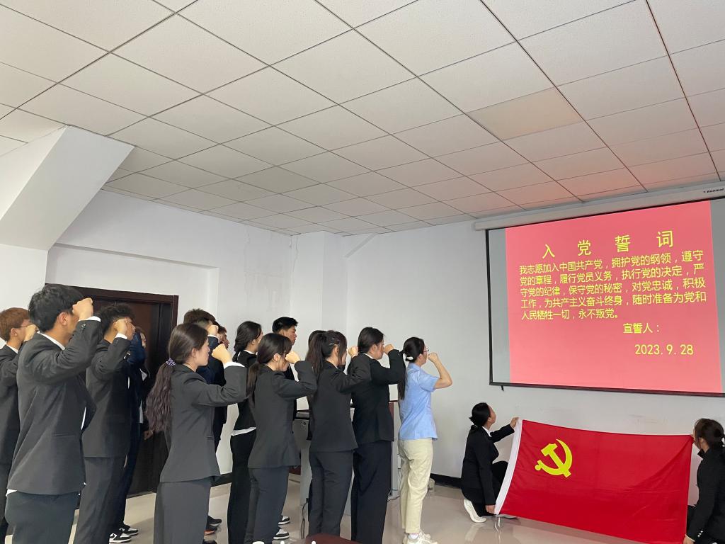 “我志愿加入中国共产党,拥护党的纲领,遵守党的章程,履行党员义务......”在卜老师的带领下,全体党员面向鲜红的党旗,高举右拳进行了庄严宣誓,在铮铮誓言中展现中国共产党人的信仰、初心及使命。