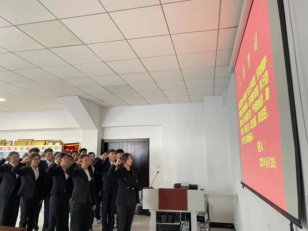 “我志愿加入中国共产主义青年团,坚决拥护中国共产党的领导,遵守团的章程……”在赵晶同学的带领下,全体共青团员宣读入团誓词,铿锵有力的誓词回荡在每一位青年心中,共同重温当年的决心和信念,以此鞭策和激励自己。进一步激发爱党、爱国家、爱人民的热情,提醒着同学们要牢记使命,不忘初心。