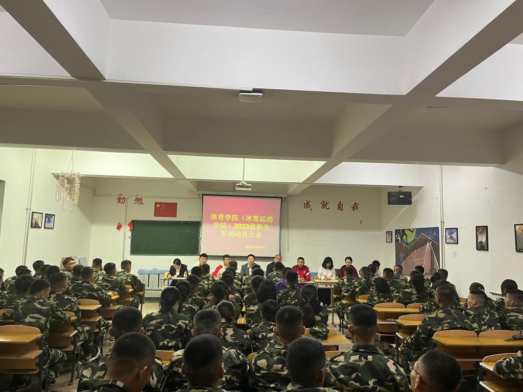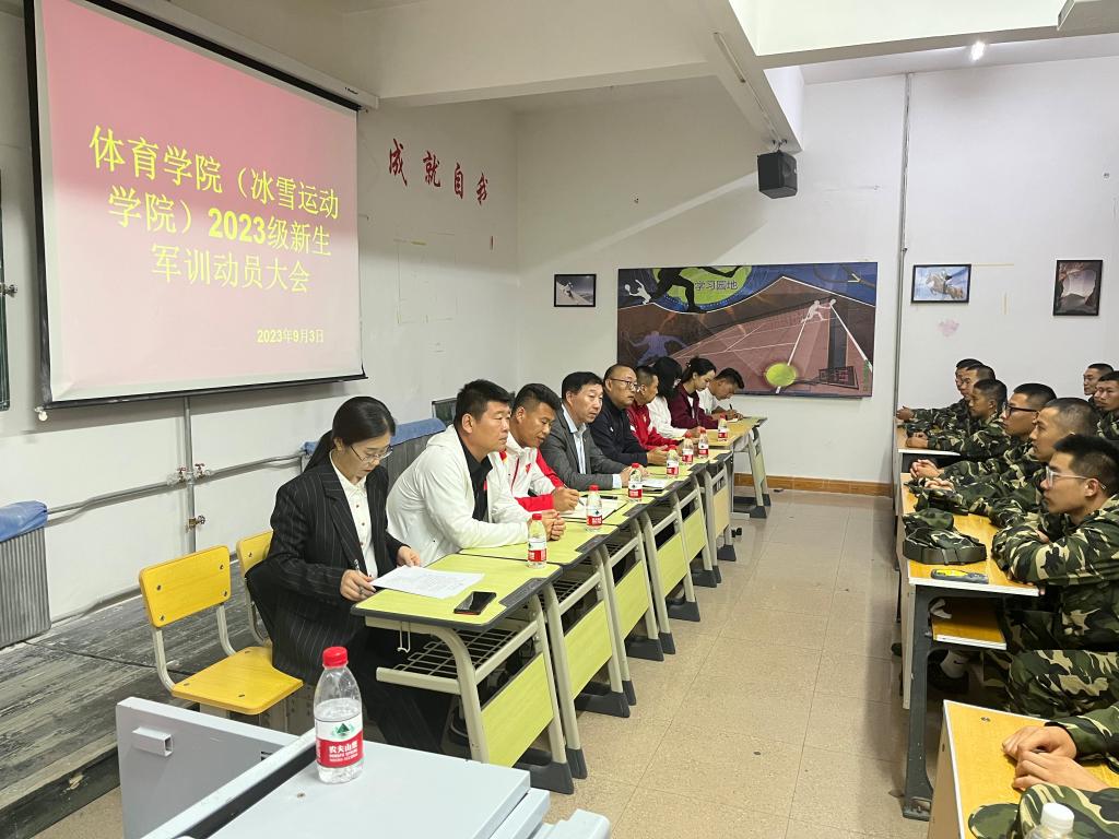少年恰青春,正逢扬帆时。为了培养新生艰苦奋斗、吃苦耐劳的坚强毅力和合作精神,调动新生参与军事训练的积极性,bevictor伟德官网于2023年9月3日在山下体育馆多媒体教室举办2023级军训动员大会。本次会议由bevictor伟德官网团学办主任卜祥云主持,体育公司党总支书记胡日查、副书记凌占一、副经理林剑冬、体育教育系主任周庆柱、团学办副主任张娜娜、各年级辅导员、班主任、军训教官及全体2023级新生共同参加。