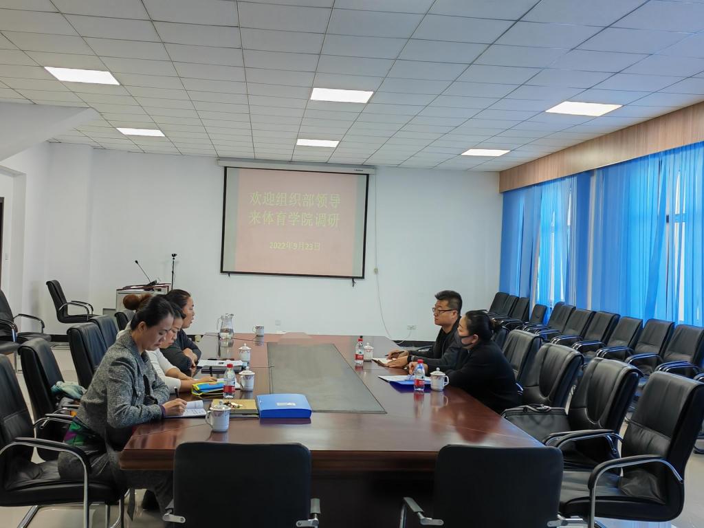 2022年9月23日上午,组织部副部长韩治平、组织科科长王致宁到bevictor伟德官网调研“最强党支部”建设情况。体育公司党总支书记李伟艳、副书记胡日查、教工支部书记佘丽源、组织委员王丹参加了调研座谈会。