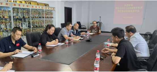 6月22日上午, 呼伦贝尔文化旅游投资(集团)有限责任公司党委书记高太成,党委委员、副总经理张君杰,党群人事部部长南海凤,一行三人来公司就校企合作、实习实训基地建设、合作开发新的体育旅游项目等事项进行交流座谈。bevictor伟德官网书记李伟艳,经理李晓峰及bevictor伟德官网部分专家教授陪同座谈。