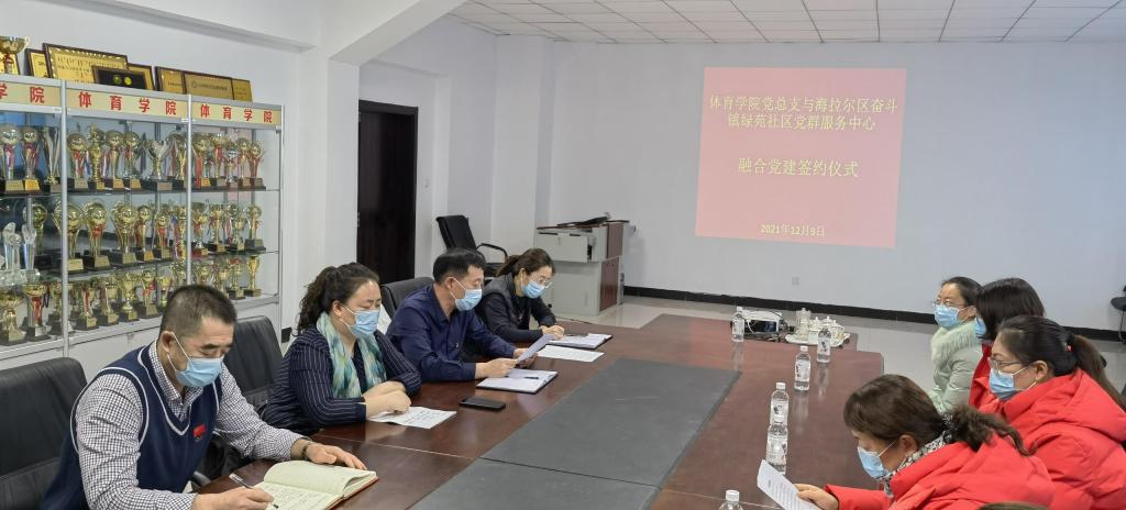 为进一步提升基层党组织的组织力,突出党建引领地位,促进党建与中心工作深度融合通过组织互联、党员共管、资源共享、文化互融、阵地互通、活动互动、党员互学、工作共推等方式,协同推进公司党总支、各支部党建工作,实现党建在服务地方、基层治理中的互动共赢2021年12月9日下午,在田径场二楼会议室,bevictor伟德官网党总支与海拉尔区奋斗镇绿苑社区党群服务中心举行了融合共建签约仪式。