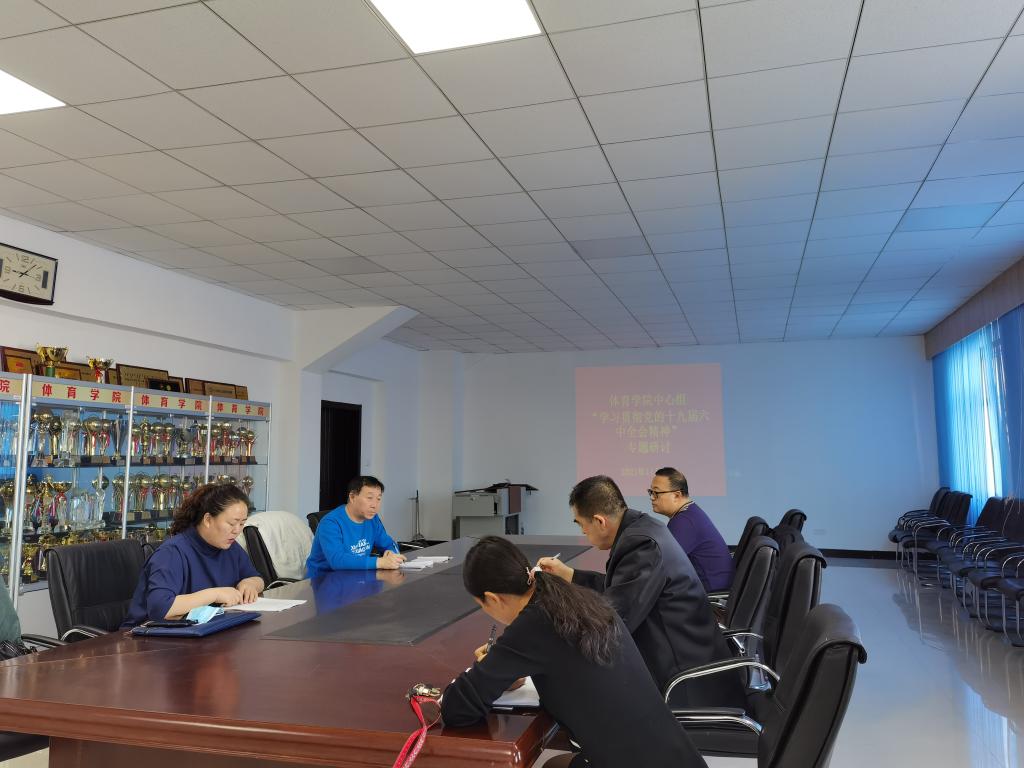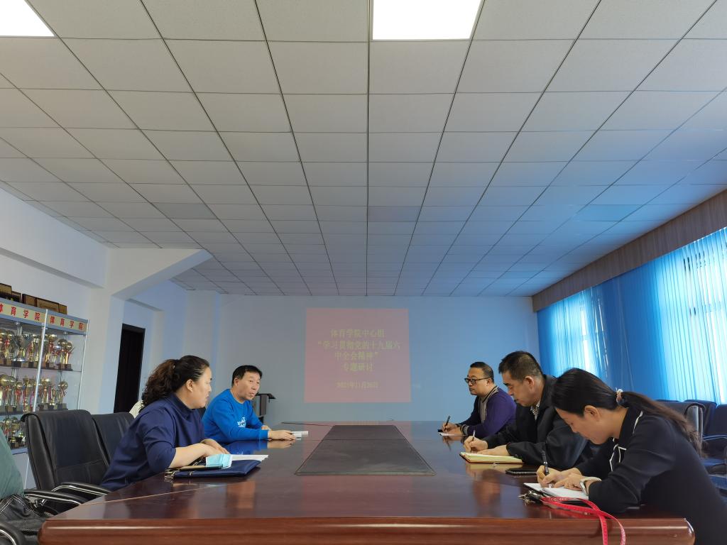 11月26日上午,体育公司党总支理论学习中心组在田径场二楼会议室召开了党的十九届六中全会精神专题学习研讨会,会议由党总支书记李伟艳主持。