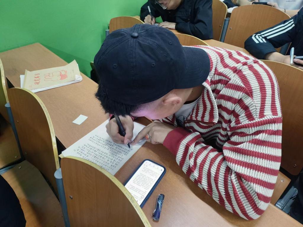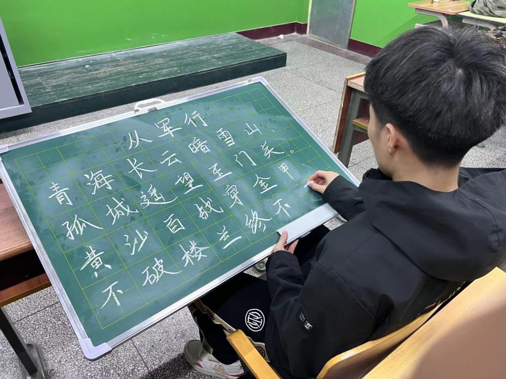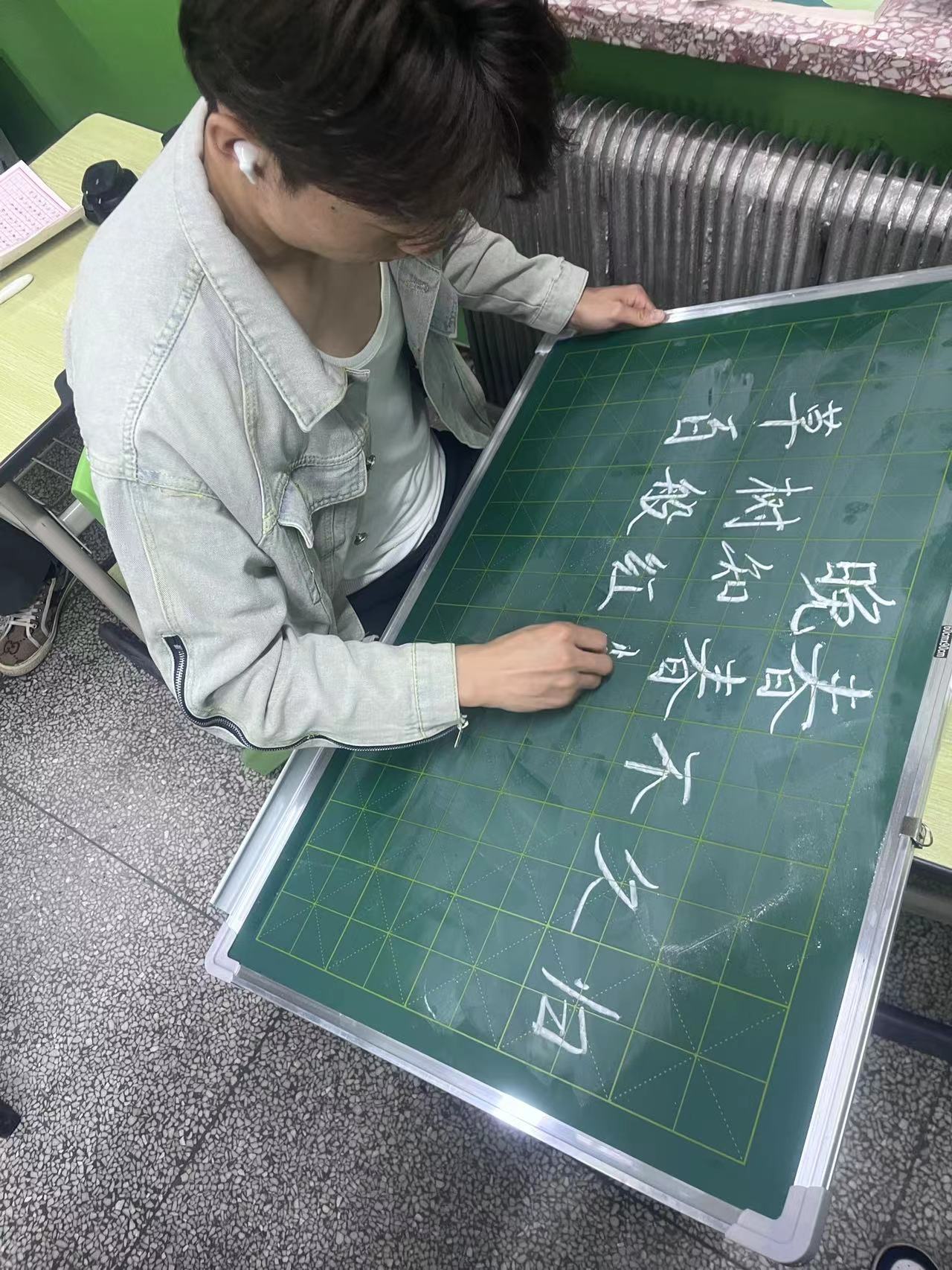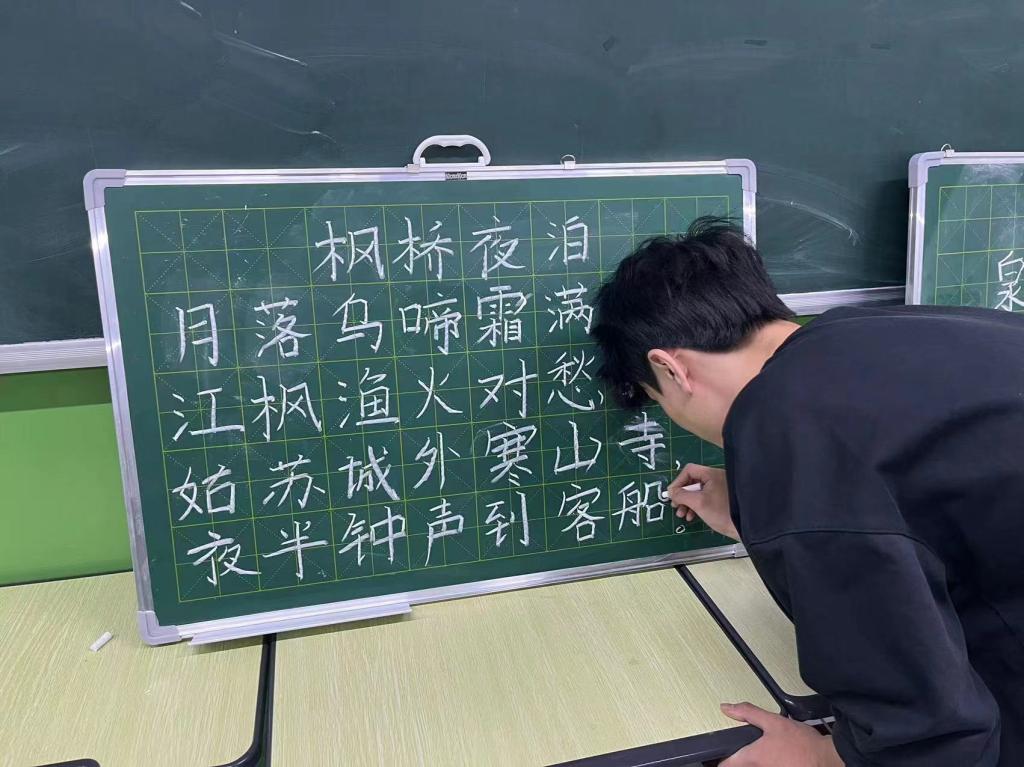 当晚自习的铃声响起,体院学子纷纷走进教室,眼前的黑板已经准备好迎接我们的创作。拿起粉笔,开始书写。每一个笔画都凝聚着我们的专注与努力,每一次转折都展现出我们对书写的热爱与追求。