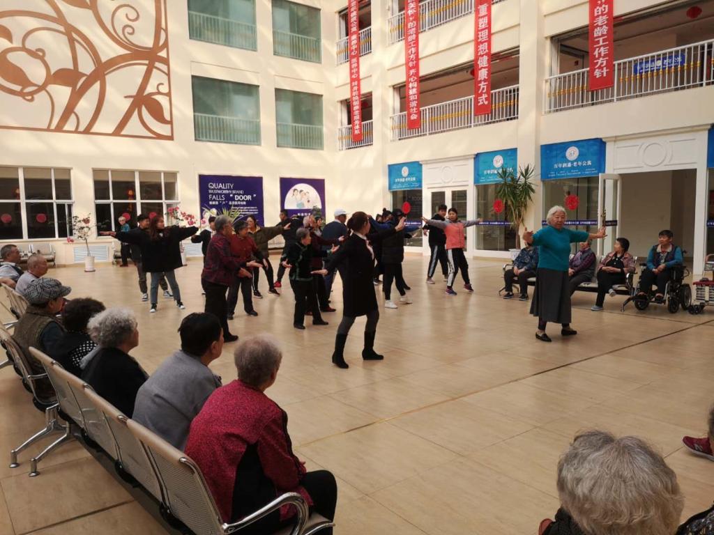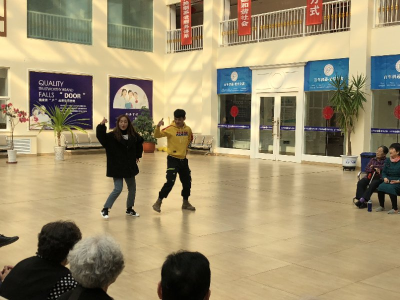 员工志愿者们来到了老年公寓,老人们因为同学们的到来感到很高兴。同学们为老人们带来了歌舞表演、诗朗诵、打太极表演等节目,赢得了老人们的一致喝彩。健康手指操的游戏让所有的老人都参与了进来,看着老人们认认真真的按照主持人的指令,一步一步的做,脸上洋溢着幸福的笑靥。