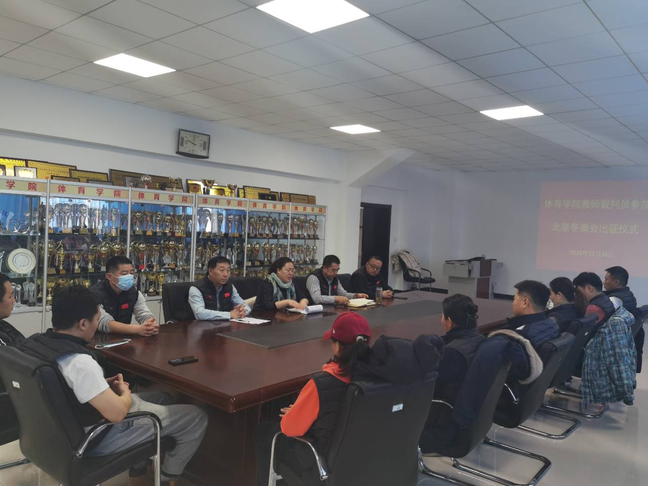 20221月9日,在bevictor伟德官网东山体育场会议室为即将要参加北京冬奥会、冬残奥会的12名裁判员举行出征仪式,bevictor伟德官网领导班子、环节干部和所有裁判员参加了此次活动。