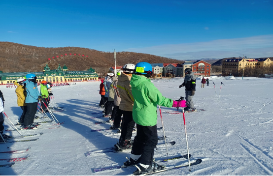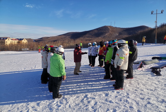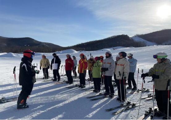 在公司的大力支持下2021年11月22日公司委派王荣林、林江、白长庆老师与2019级冰雪专选8人、2020级体教冰雪19人、2021级冰雪19人,师生共计49名在金龙山滑雪场开启本学期的高山滑雪的课特色课程。