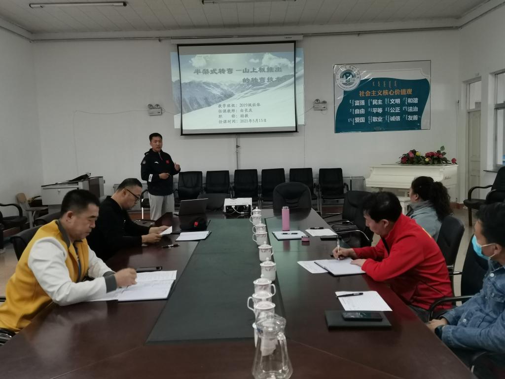 两名冰雪运动专业人员参与了应聘。在面试过程中,5名评委分别对应聘者从专业教学、专业科研、师德师风等五方面进行全面的提问;在说课试讲环节,两名应聘人员各展风采。白长庆同志虽是少数民族同志,但运用民族通用语言授课中语言精练,表述准确,专业术语运用精准,使课堂结构合理完整,受到专家评委的青睐。刘国光同志作为职业运动员,多年从事专业滑冰教练,通过授课过程中标准漂亮的技术动作示范,使各位专家眼前一亮,得到了专家评委的好评。