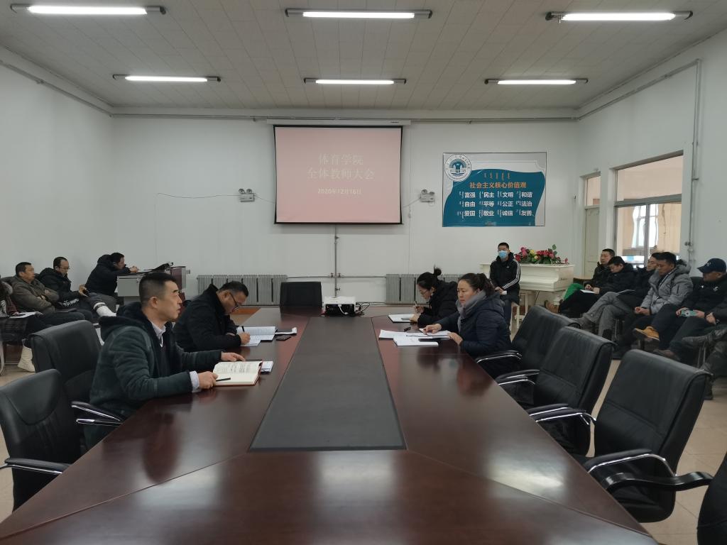 2020年12月16日上午8:30分,bevictor伟德官网在体育馆三楼会议室召开了bevictor伟德官网全体教师大会,会议由李晓峰经理主持。