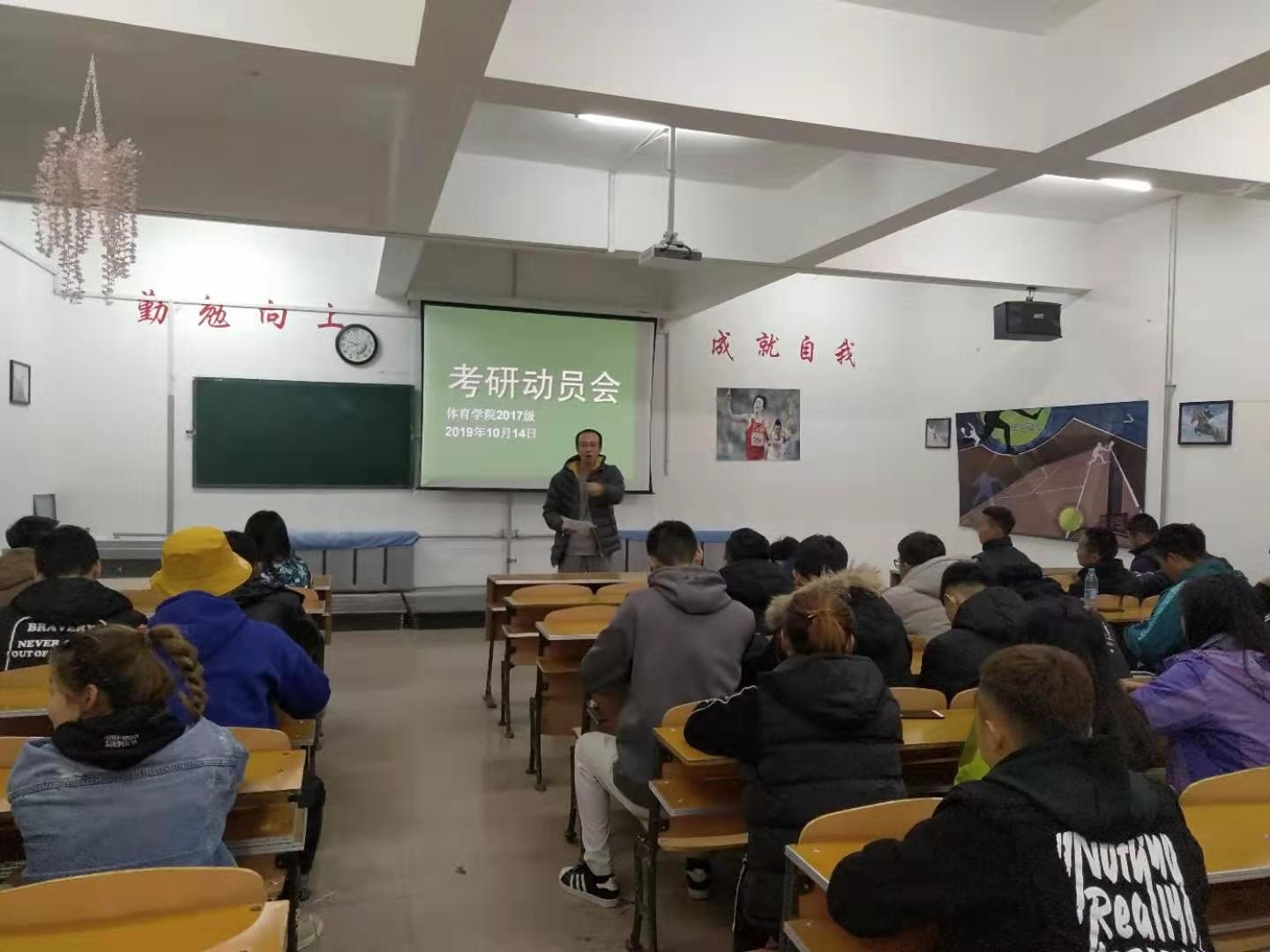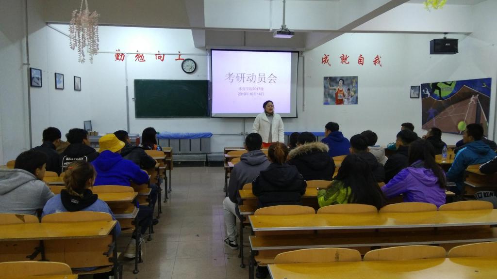 bevictor伟德官网领导班子非常关心员工的考研情况。20191014日中午1230,体育馆二楼多媒体教室,邢末老师和姜莹老师给2017级全体同学召开了考研动员大会。