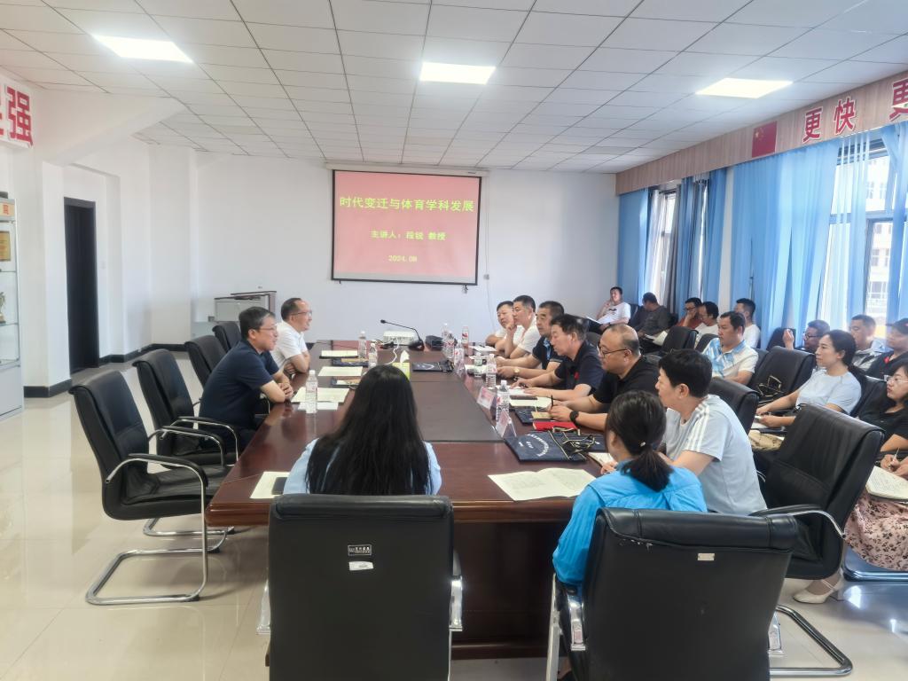 呼伦贝尔公司党委委员副董事长尹立军做了重要讲话,李晓峰经理就伟德官网bv1946、bevictor伟德官网体育学科的发展现状、存在的问题进行了明确的阐述与说明;段锐教授与杨忠伟教授分别做了时代变迁与体育学科发展和基于培养卓越体育教师的体育教育专业建设的讲座,分享了华南师范大学体育团队建设成功的经验。