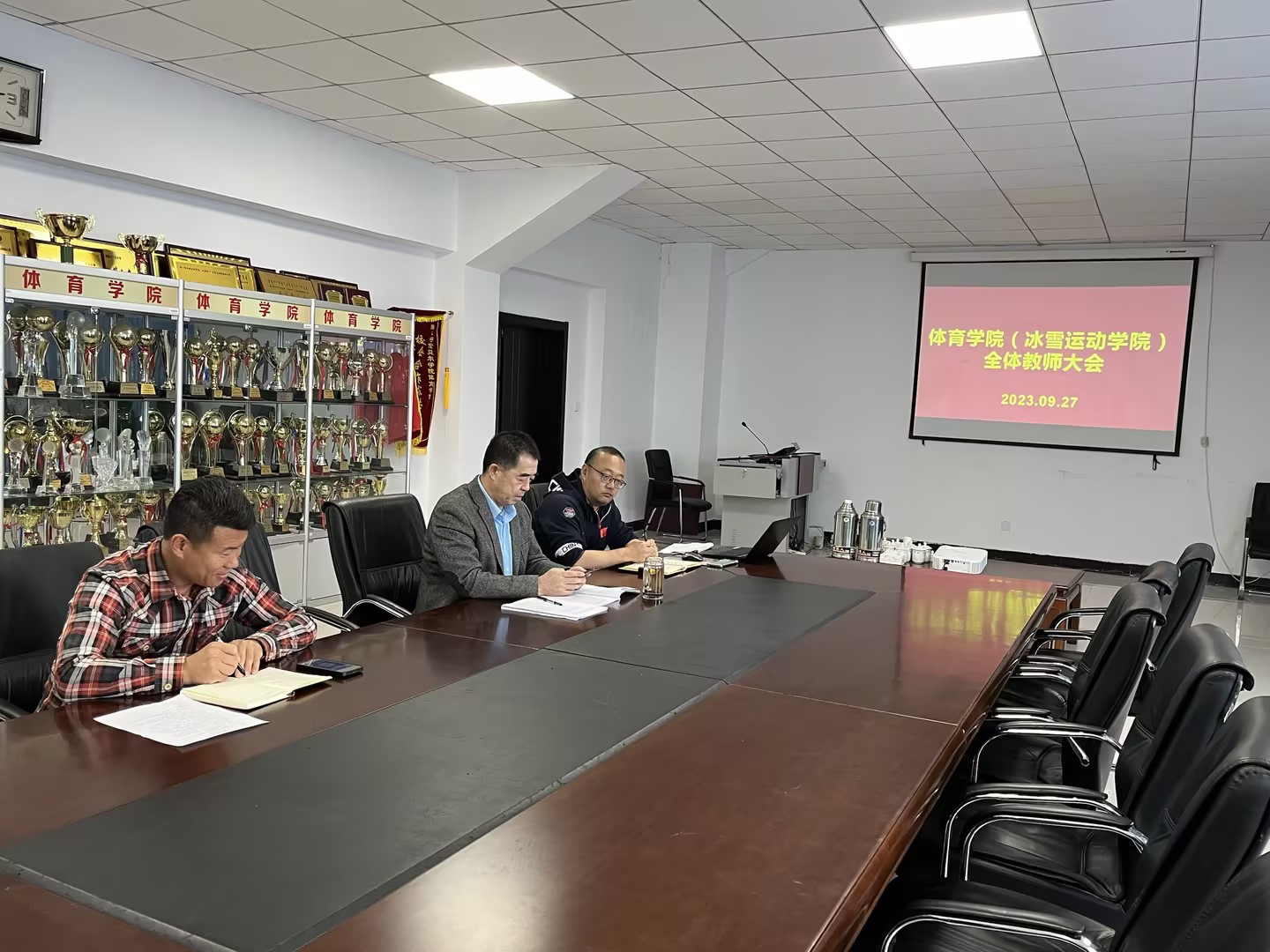 9月27日下午,bevictor伟德官网于东山体育场二楼会议室召开全体教师工作大会,bevictor伟德官网经理李晓峰、副书记凌占一、副经理林剑冬出席,全体教师共同参会。