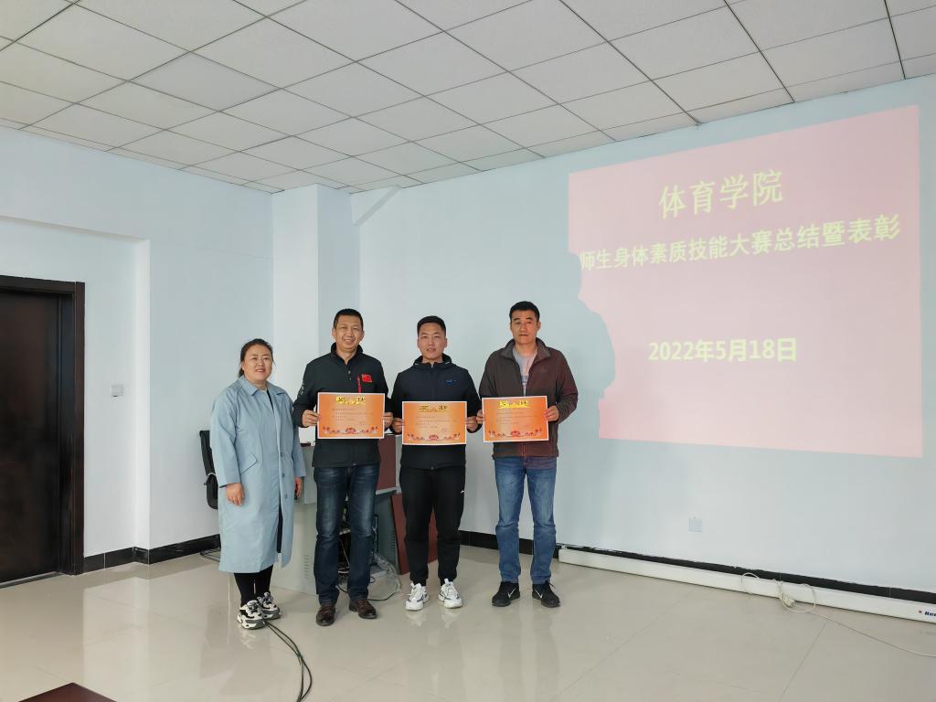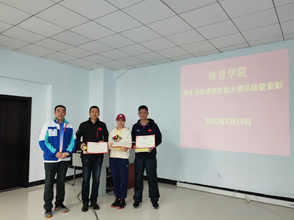 在bevictor伟德官网领导的大力支持下,在全体师生、裁判员的共同努力下,经过详细的数据统计,bevictor伟德官网师生身体素质技能大赛的获奖名单终于产生。2021级冰雪运动一班、2021级体育教育汉本班、2019级社会体育指导与管理班分别以232.84、229.66、224.32的总成绩获得员工组的前三名;周庆柱、范成伟、孟凡明分别获得了教师组跳绳、俯卧撑、仰卧起坐的冠军。在表彰会上,李伟艳书记和李晓峰经理分别为获奖班级及获奖教师颁奖。