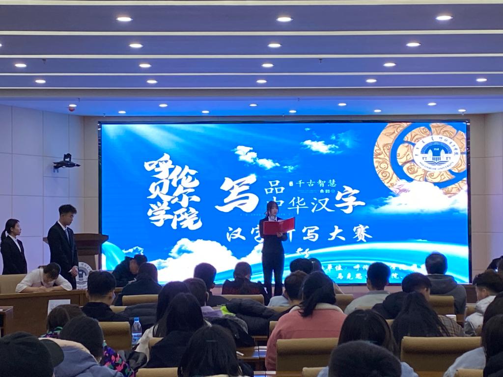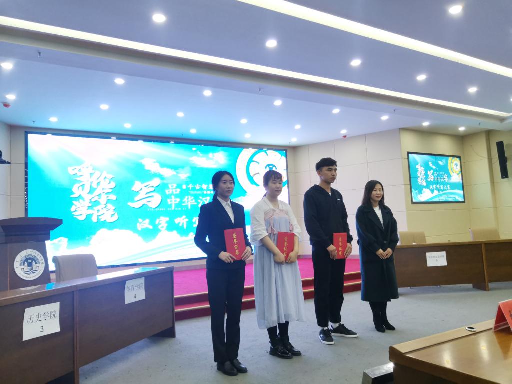 此次比赛共有七个公司28人参加,由伟德官网bv1946校团委组织宣传部部长盛超老师、文公司张丽霞老师、马克思主义公司党总支副书记刘琳老师、体育公司党总支副书记胡日查老师、马克思主义公司团总支书记杜海钰老师做裁判。比赛共分为三个回合,第一回合是常用字听写,第二回合是成语听写,第三回合是典故听写。最后由裁判老师评分,由主持人公布获奖名单并颁发证书。