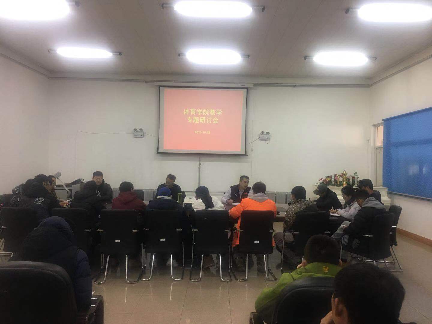 10月25日上午8点30分,bevictor伟德官网全体公共体育教师,在bevictor伟德官网经理李晓峰、副经理林建东、公共体育教研室主任关祥伟的组织下开展了“bevictor伟德官网教学研讨会” 主要针对老员工体质监测工作改革在实施过程中遇到的问题进行深入研讨。