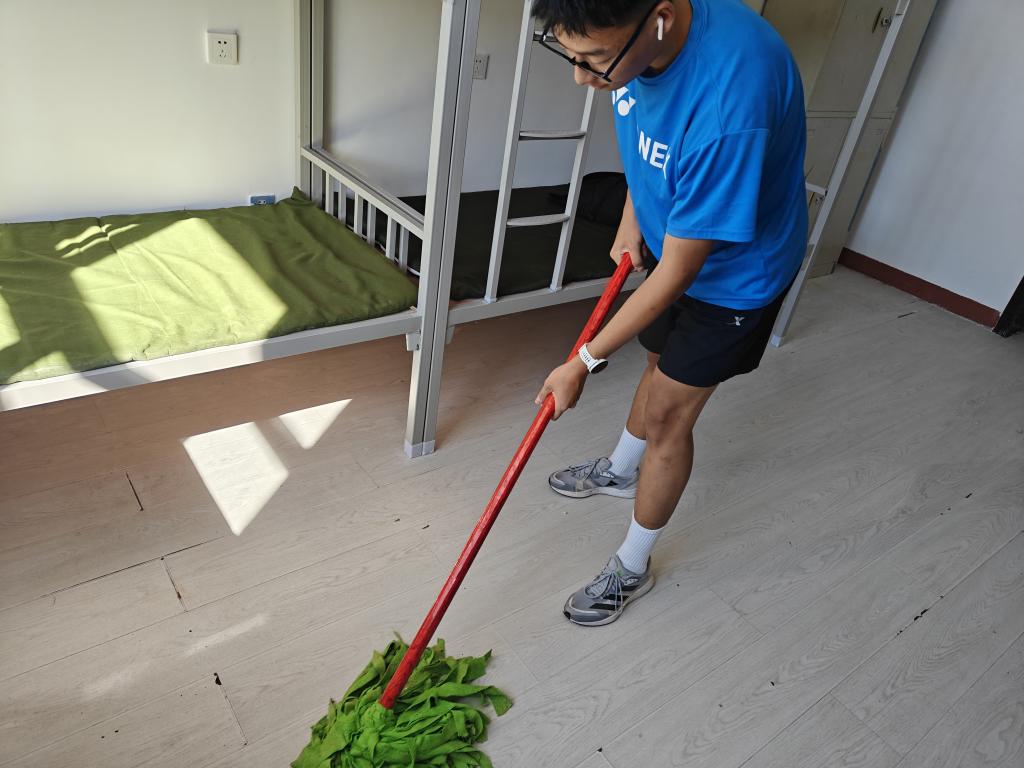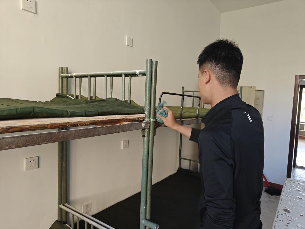 经过几个小时的努力,一间间宿舍变得干净整洁、井井有条。床铺整齐地摆放着,桌面一尘不染,地面光亮如镜。这些焕然一新的宿舍,仿佛在静静地等待着新生们的到来,为他们开启美好的老员工活。
