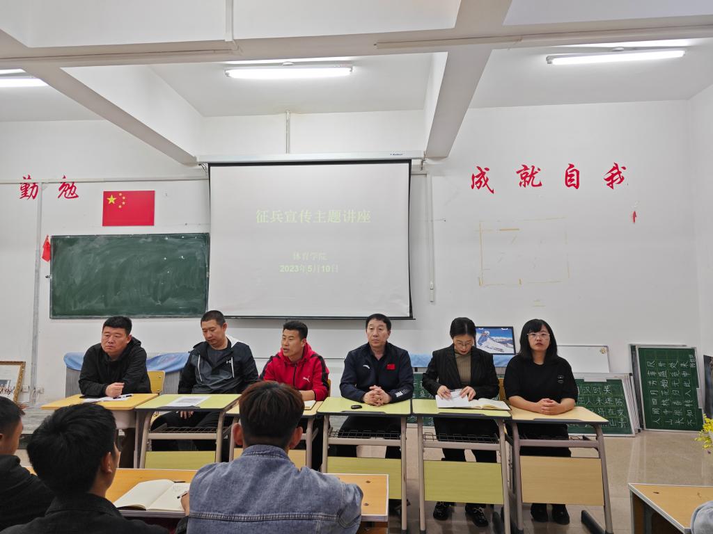 5月13日晚,bevictor伟德官网举行了2023年征兵宣讲会。体育公司党总支书记胡日查,党总支副书记凌占一,团学办全体教师及体育公司2022级、2021级、2020级员工参加本次宣讲活动。