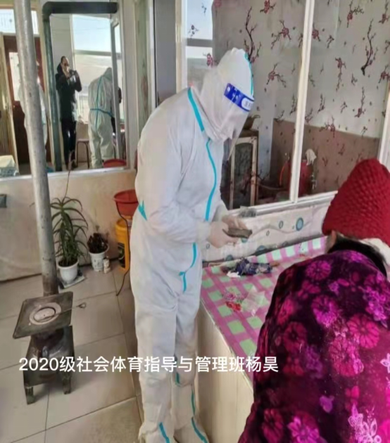 2020级社会体育指导与管理的杨昊同学在2月25日加入到呼和浩特市张家界街道办事处进行志愿服务。主要工作有完成整栋楼每个人的核酸采样。我相信疫情终会过去,每个人尽一份力,发一点光,汇聚萤火之光,照耀整个星河。
