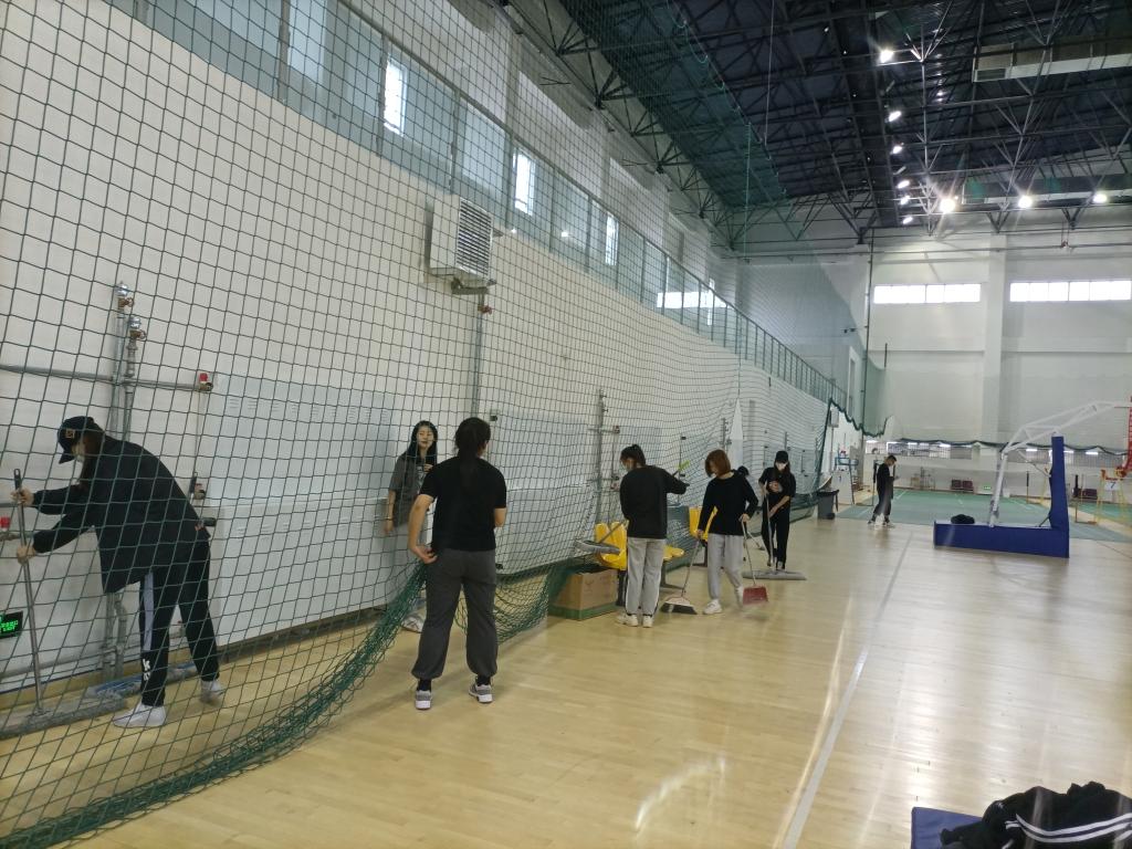 在室外劳动中,师生党员先后顶着雨在足球馆外清理杂草和建筑垃圾,平整土地;在室内劳动中,打扫羽毛球、篮球场地和办公区卫生,党员们分工明确,忙而不乱,干劲十足,不怕脏、不怕累,在大家的共同努力下,场馆内外收拾的干净整洁。