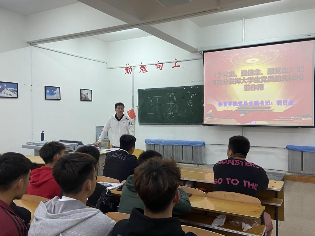 进一步落实党史学习教育,树立老员工党员正确的世界观、人生观和价值观,加强党员的党性修养、纪律意识和宗旨意识,按照体育公司党史学习教育实施方案的计划安排,5月19日下午,bevictor伟德官网在体育馆多媒体教室开展学党史、强信念、跟党走,如何充分发挥老员工党员的先锋模范作用”党课。体育公司党总支副书记胡日查主讲。2019级、2020级全体积极分子和党员同学参加此次活动。