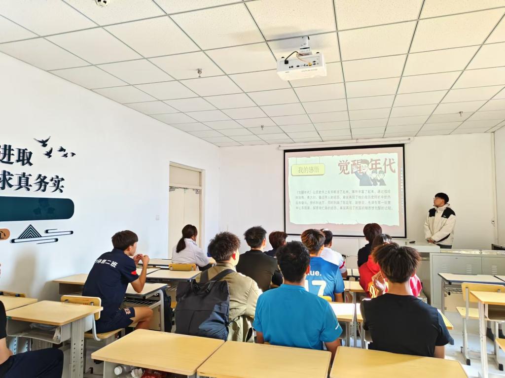 活动内容包括:作品简介、人物介绍、经典语录、我的感悟等四个部分。活动现场气氛热烈而庄重。在开场环节,钱敬同学简要介绍了此次活动的目的和意义,强调《觉醒年代》这本书对于当代青年了解历史、感悟先辈精神的重要性。随着活动的深入,同学们纷纷分享自己对《觉醒年代》的深刻感悟。同学们对书中的人物形象进行了深入分析。陈独秀的坚定执着、李大钊的无私奉献、毛泽东的刚毅勇敢等,都成为大家学习的榜样。这些人物不仅仅是历史中的形象,更是大家前进道路上的精神灯塔,激励着他们在学习和生活中勇往直前。