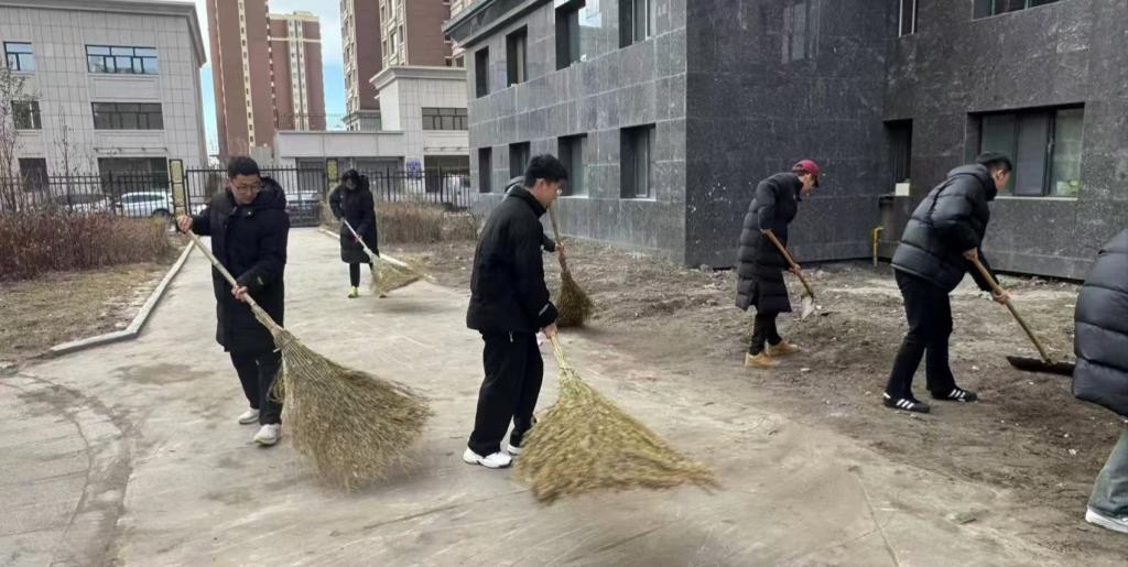 活动中,员工们积极参与社区清洁志愿服务。他们手持铁锹、扫帚,分散在社区的各个角落,街道旁、花坛边、屋檐下,都有他们忙碌的身影。不怕脏、不怕累,认真清扫每一处垃圾,撕去一张张小广告。他们用汗水换来了社区的整洁,获得了社区居民们的纷纷点赞。同学们以实际行动展现了新时代青年的责任与担当,为社区环境改善贡献了自己的力量,也让温暖在社区中传递。