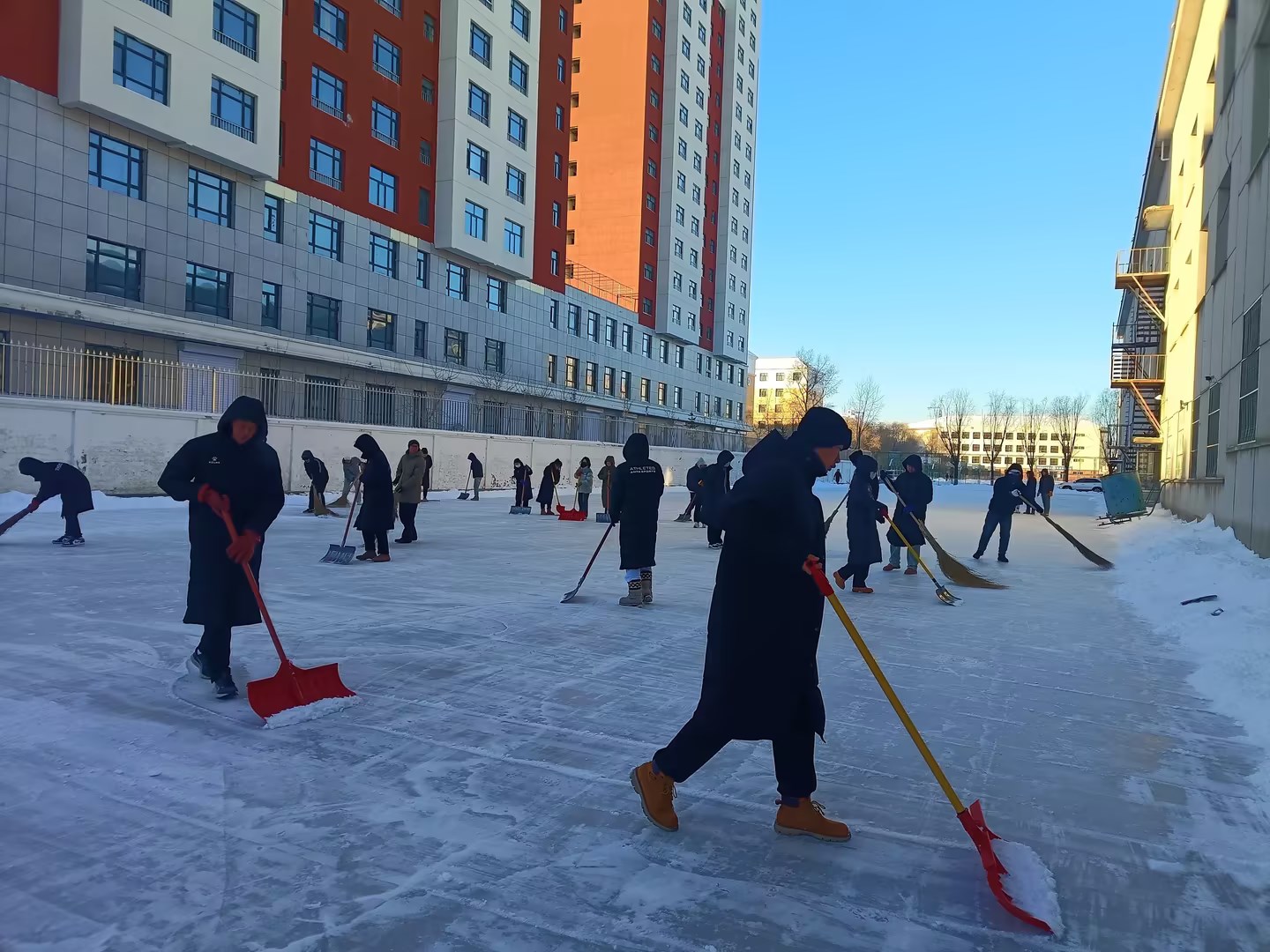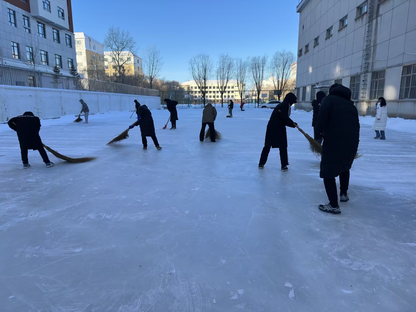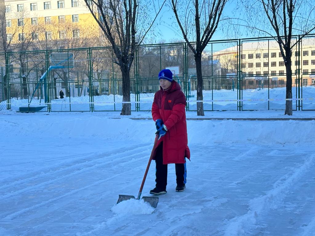 扫雪过程中,大家热火朝天,有的挥舞铁锨,铲除冰面上的积雪,有的手拿扫帚,清扫浮雪,使冰面更加干净。大家相互配合、共同协作,忙碌的身影在冰面上形成道靓丽的风景线。经过两个小时的清理,冰面积雪被扫得干干净净。
