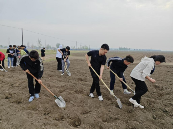 上午,同学们抵达水晶花宫,在农场技术人员的专业指导下,有序分组投入劳动。“挖沟小分队”率先出击!大家手握锄头、弯腰弓背,不一会儿就挖出一条条笔直的沟垄;随后,“种植主力军”上线,他们小心翼翼地将土豆栽子、玉米种子按间距分别摆放进固定的垄沟里,动作精准而细致;最后,“覆土小能手”迅速跟上,一铲铲泥土均匀覆盖,为种子们盖上温暖的“被子”。汗水浸湿了同学们的衣衫,但大家的脸上仍然洋溢着劳动带来的喜悦与成就感。
