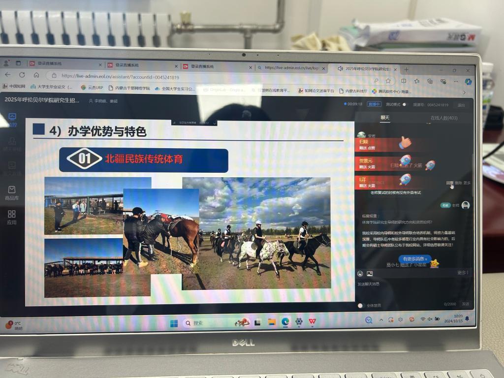 此次直播活动主要介绍了公司的基本情况,并从体育硕士专业学位研究生授权点的培养目标与定位、团队队伍、学科教科研成果、办学条件、办学优势与特色、就业情况、招生政策及报考条件等内容进行讲解。李晓峰经理细致地讲解了体育硕士专业的优势,并通过实际案例展示了毕业生在体育行业的广泛发展前景。直播期间,不仅有员工踊跃提问,经理还在线回答了关于报名流程、复试内容及未来就业方向等问题,使得整场活动充满互动性。